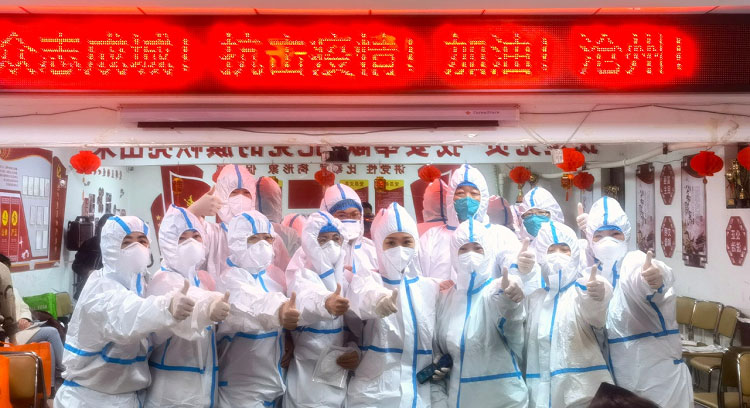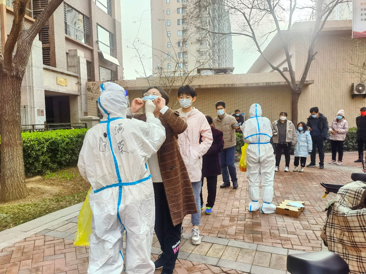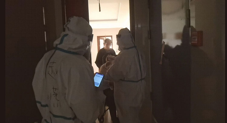 疫情初期每天都是入戶檢測(cè),32層樓,共計(jì)200多人的檢測(cè)耗時(shí)接近一天。每天除了爬樓和不能坐的辛苦外,為了節(jié)省隔離服,大家都是不吃不喝不上廁所,天氣熱的時(shí)候全身濕透,天氣冷的時(shí)候凍的手都沒(méi)有知覺(jué),雖然很辛苦,但大家依然在堅(jiān)守。